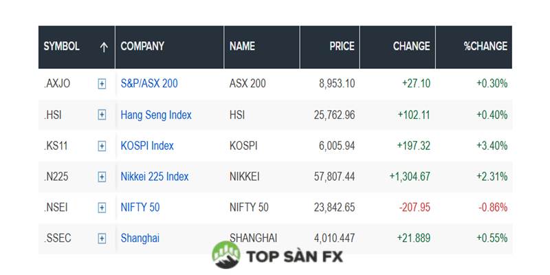 Tại Trung Quốc đại lục, chỉ số CSI300 tăng 0,65%, trong khi chỉ số Hang Seng của Hồng Kông tăng 1%.