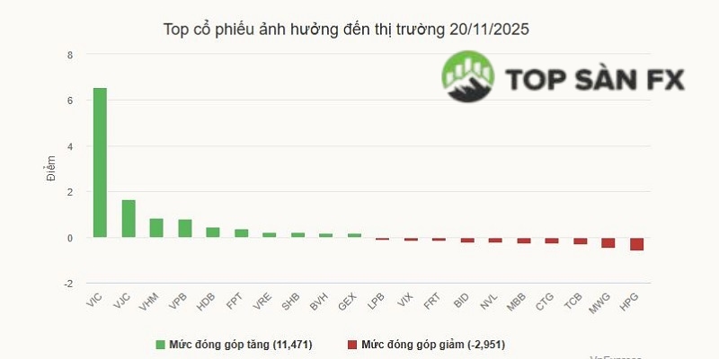 Top cổ phiếu ảnh hưởng đến thị trường ngày 20/11