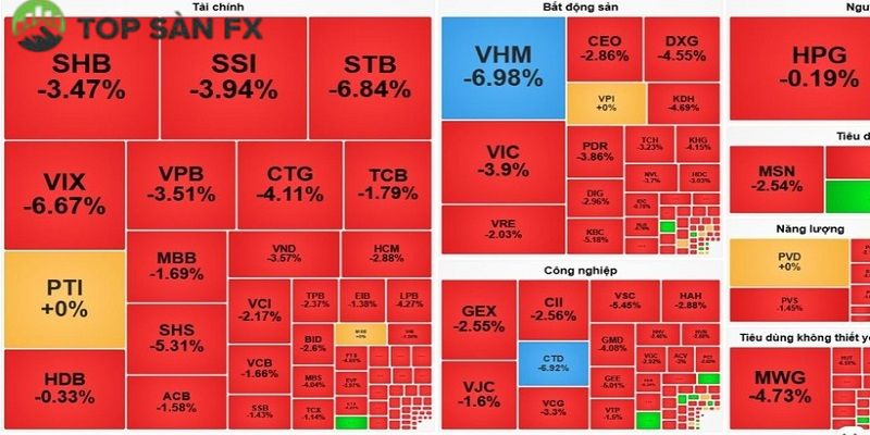 Các chuyên gia đến từ Công ty Chứng khoán Vietcombank (VCBS) nhận định: “Mức giảm mạnh đi kèm với áp lực bán chủ động lan tỏa trên diện rộng là một tín hiệu rõ nét cho thấy tâm lý bi quan và thận trọng đang bao trùm toàn thị trường.”