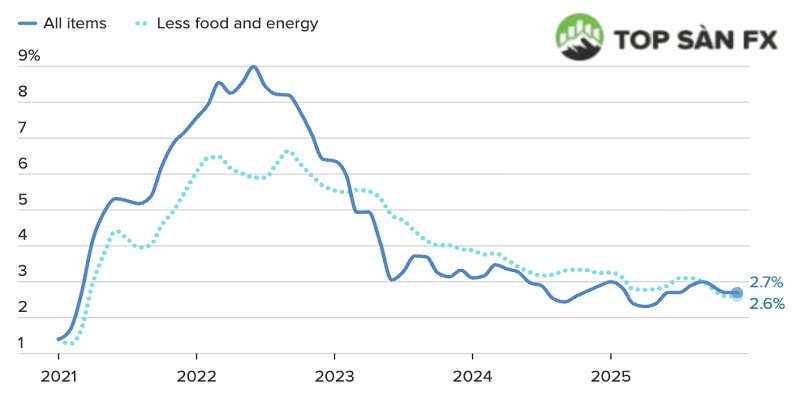 Cụ thể, khi loại trừ các mặt hàng có biến động mạnh như thực phẩm và năng lượng, chỉ số CPI lõi của Mỹ trong tháng 12 chỉ nhích 0,2% so với tháng trước và tăng 2,6% so với cùng kỳ năm ngoái, thấp hơn 0,1 điểm phần trăm so với dự đoán của thị trường. Giới quan chức Fed coi lạm phát lõi là thước đo tốt hơn để dự báo xu hướng lạm phát dài hạn.
