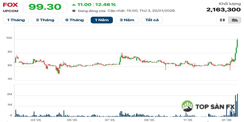 Cổ phiếu FPT Telecom (MCK: FOX) đang trở thành tâm điểm chú ý trên thị trường khi ghi nhận chuỗi ba phiên tăng mạnh liên tiếp và thiết lập mức giá cao nhất từ trước đến nay. Tính từ đầu năm 2026, FOX đã tăng khoảng 56%, lên 99.300 đồng mỗi cổ phiếu. Cùng với đó, vốn hóa của FPT Telecom cũng chạm ngưỡng kỷ lục hơn 73.000 tỷ đồng, cao hơn gần 29.000 tỷ đồng so với thời điểm doanh nghiệp chuyển về Bộ Công an quản lý.