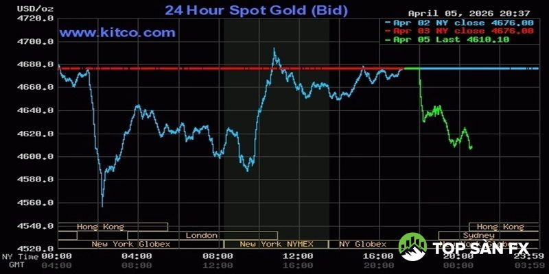 Trên thị trường vàng, giá vàng thế giới tiếp tục giảm đầu phiên 6/4, do lời đe dọa của ông Trump với Iran. Hiện mỗi ounce mất 66 USD về 4.610 USD một ounce.
