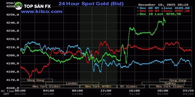 Bước sang phiên giao dịch sáng ngày 11/12, có thời điểm chạm 4.244 USD/oz. Tai Wong – chuyên gia giao dịch kim loại quý cho biết: “Nhà đầu tư thích kết quả hôm nay, giá vàng vì thế tăng trở lại sau khi bị bán tháo chốt lời”. Lãi suất giảm giúp vàng hấp dẫn hơn, do kim loại quý này không trả lãi cố định.