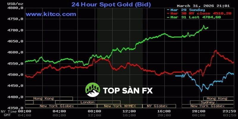 Cụ thể, kết phiên giao dịch 31/3 hôm qua, giá vàng thế giới giao ngay tăng 157 USD lên 4.667 USD một ounce. Sáng 1/4, giá tiếp tục đi lên, hiện chạm 4.704 USD.