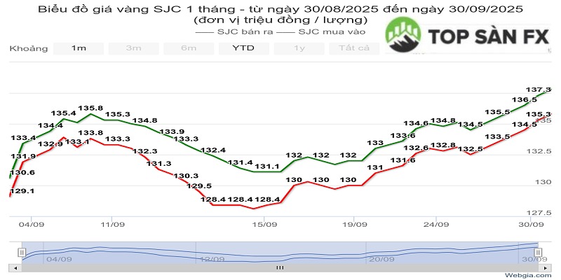 Vàng SJC 0.5 chỉ, 1 chỉ, 2 chỉ 135,860,000