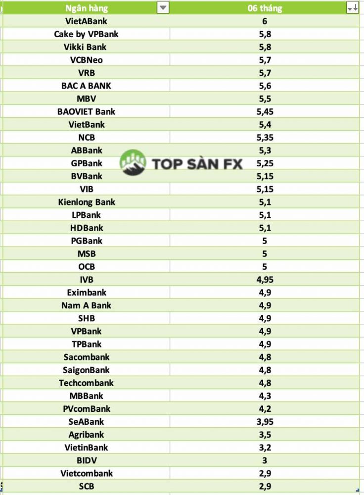 Lãi suất gửi tiết kiệm tại các ngân hàng kỳ hạn 6 tháng: