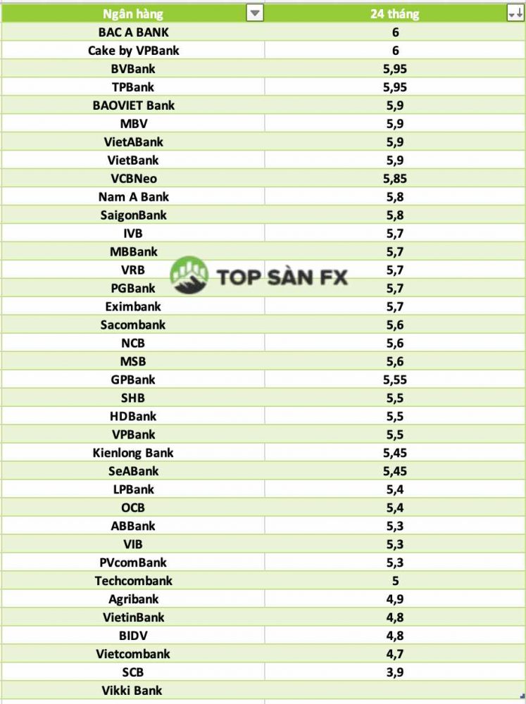 So sánh lãi suất ngân hàng cao nhất ở kỳ hạn 24 tháng