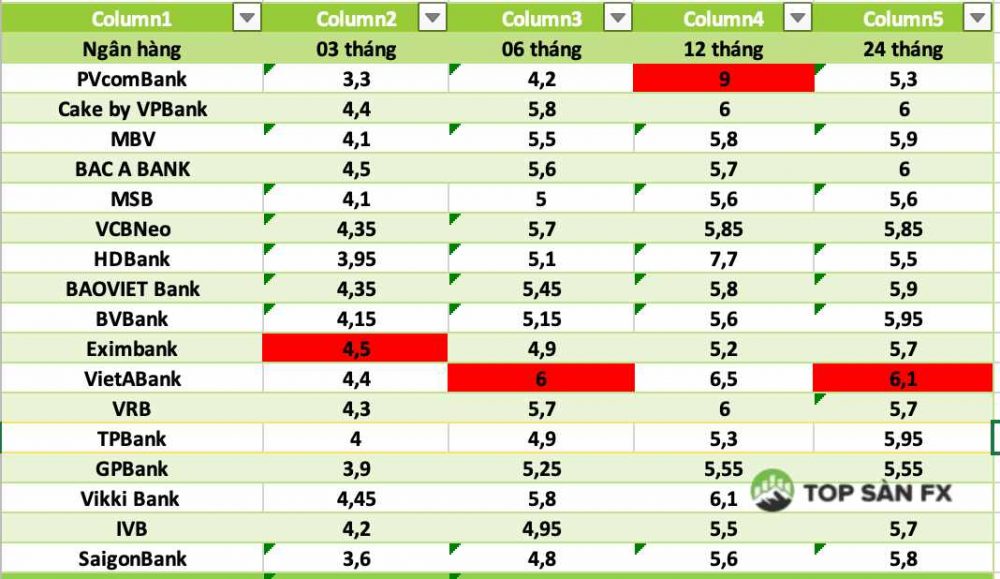 Thống kê các ngân hàng có lãi suất tiền gửi tiết kiệm cao nhất hiện nay: