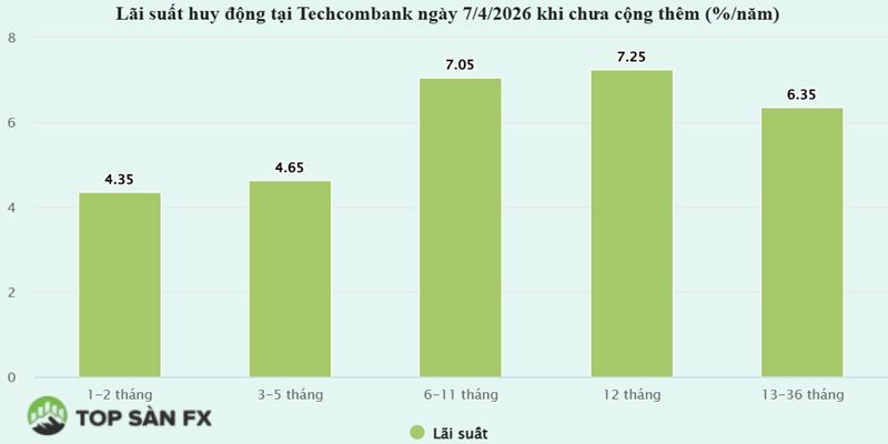 Bên cạnh đó, Techcombank còn triển khai ưu đãi cộng thêm 0,8%/năm cho các khoản tiền gửi online kỳ hạn 6 tháng vào mỗi thứ Hai hàng tuần. Khi đáp ứng đầy đủ điều kiện, khách hàng có thể hưởng mức lãi suất tối đa lên tới 8%/năm cho kỳ hạn chỉ 6 tháng.