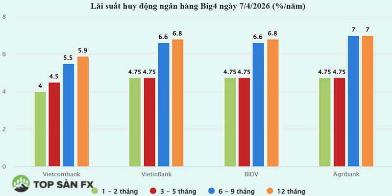 Trong nhóm Big4 ngân hàng, Agribank vẫn đang là ngân hàng niêm yết lãi suất tiền gửi cao nhất, lên tới 7%/năm cho kỳ hạn 6-36 tháng.
