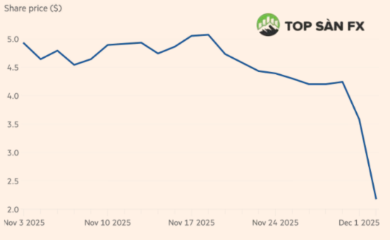 Cụ thể, kết thúc phiên 02/12, cổ phiếu American Bitcoin đóng cửa giảm 38.8%, “bốc hơi” khoảng 1 tỷ USD vốn hóa thị trường. Khối lượng giao dịch tăng vọt gấp gần 40 lần mức trung bình hàng ngày.