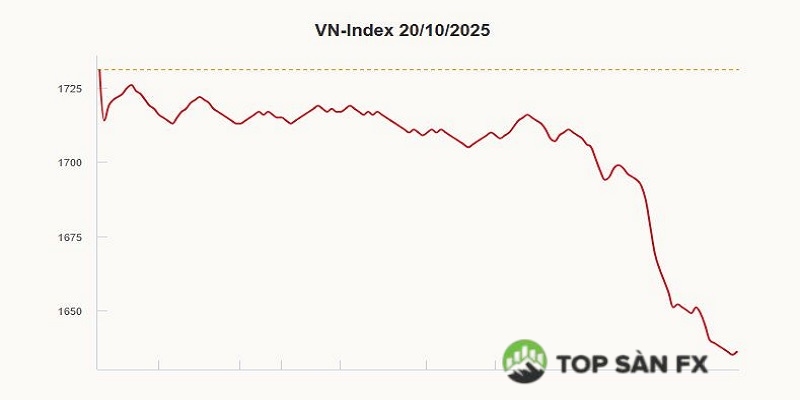 Khép lại phiên giao dịch đầu tuần hôm qua 20/10, thị trường chứng khoán với sắc đỏ lẫn xanh bơ bao trùm bảng điện. Đáng chú ý, chỉ số VN-Index giảm gần 95 điểm cuống còn 1.636,43 điểm.