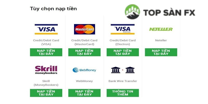 Các hình thức nạp và rút tiền tại sàn XM