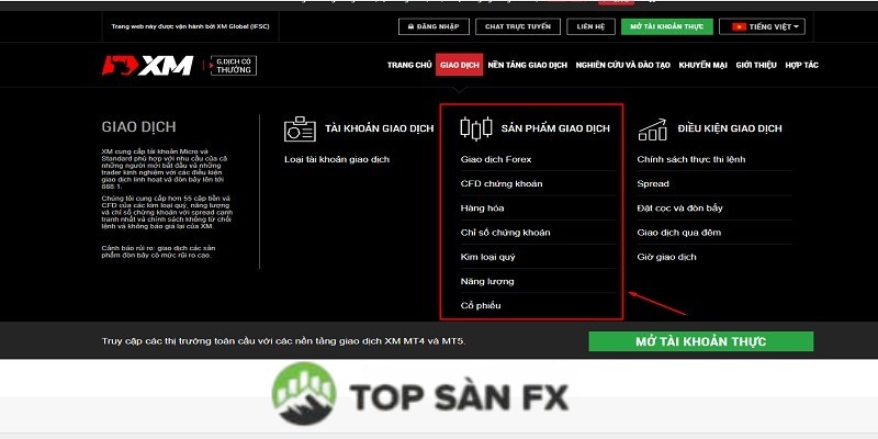 Các sản phẩm giao dịch sàn XM