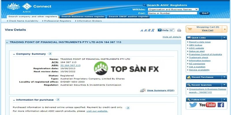 - Trading Point of Financial Instruments Pty Ltd, cấp phép và quản lý bởi ASIC – Ủy ban Đầu tư & Chứng khoán Úc với số giấy phép 443670.