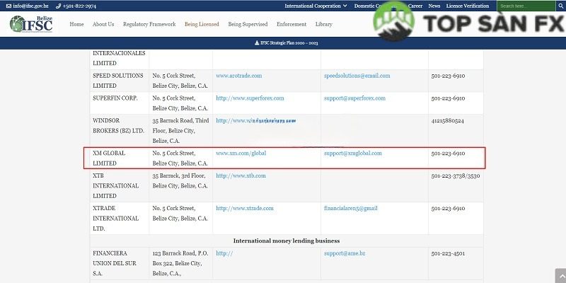 - XM Global Limited, được quản lý bởi IFSC – Ủy ban Dịch vụ Tài chính Quốc tế Belize với số giấy phép 000261/106.