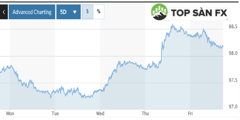 Trên thị trường Mỹ, chỉ số US Dollar Index (DXY) đo lường biến động đồng bạc xanh với 6 đồng tiền chủ chốt (EUR, JPY, GBP, CAD, SEK, CHF) đứng ở mức 98,18.